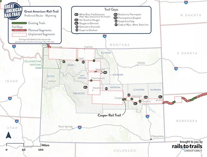 We’ve been doing a lot of outreach in the state to raise awareness and talk about the benefits of trails. Cowboy State Daily recently interviewed me about the trail, “3,700-Mile Cross-Country ‘Rail-Trail’ Will Include 500 miles across Wyoming – If It Ever Happens.” That headline is a little pessimistic – I’m confident that it will happen one day. We’ll probably need to be creative about what the trail in Wyoming looks like, but the solution needs to come from the grassroots. Locals have to want it. We’re happy to support the state with resources and collaborating when it’s warranted and helpful.